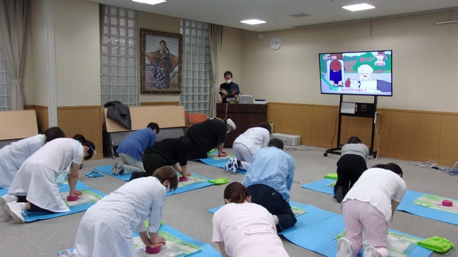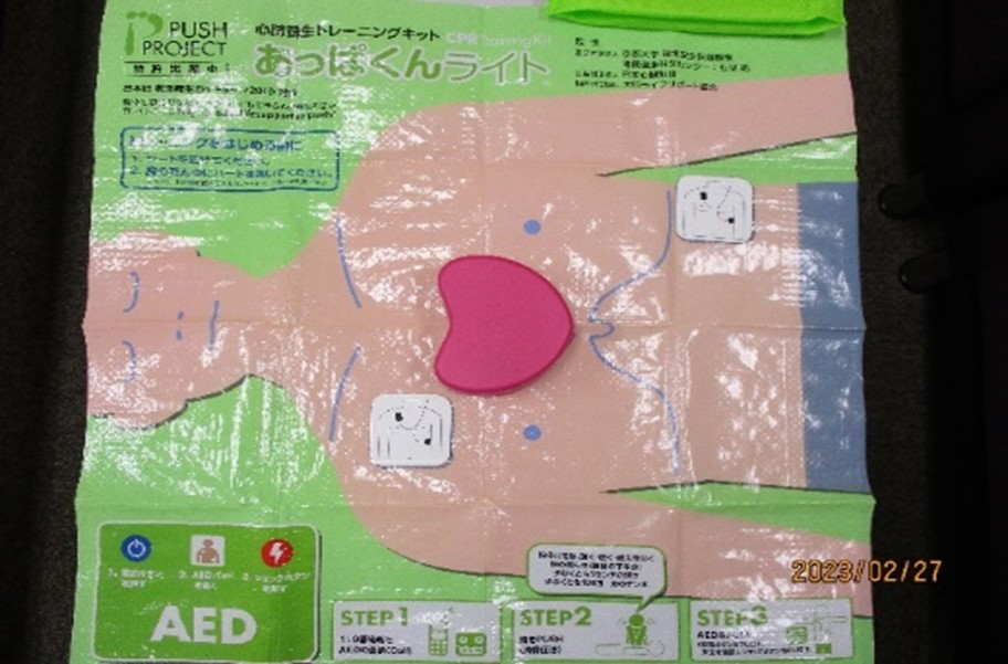 新潟PUSHプロジェクトの心肺蘇生トレーニングキット『あっぱくん』を使用し、胸骨圧迫(心臓マッサージ)とAEDの使い方を学びました。