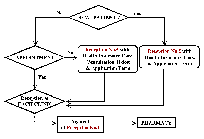 - If you are new patient, you must go to RECEPTION N0.6 with your